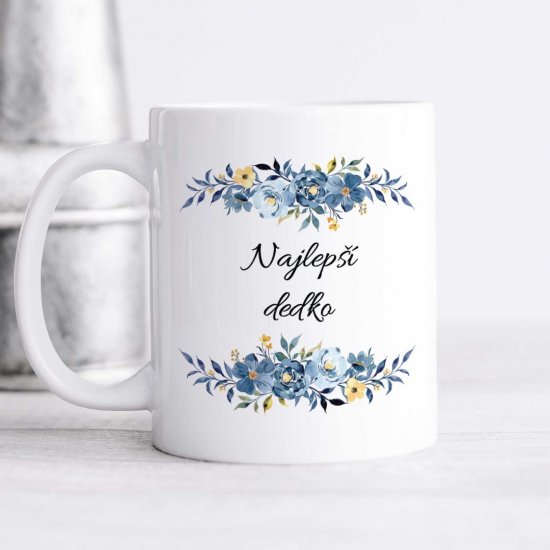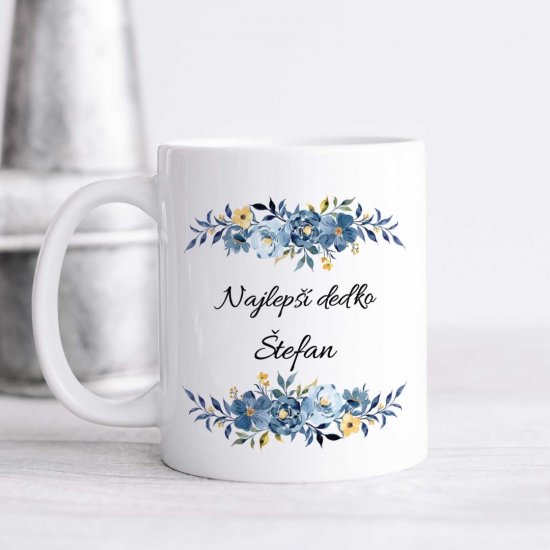 Hrnček Najlepší dedko – modré kvety aj s menom
