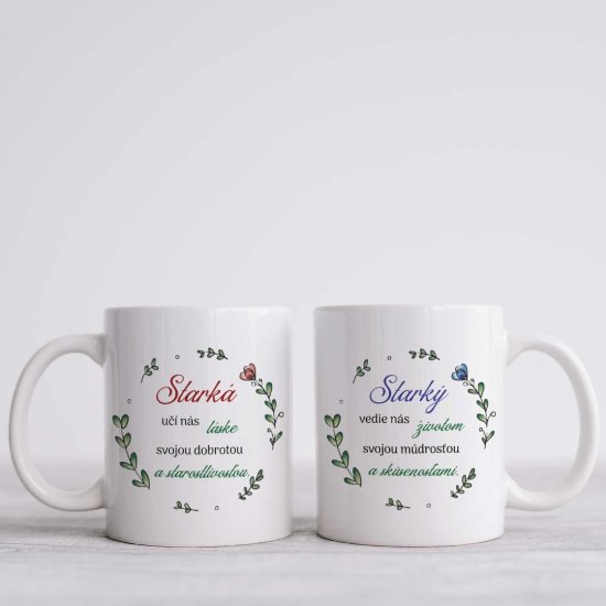 Set hrnčekov pre starkú a starkého – Starká učí láske, Starký vedie životom