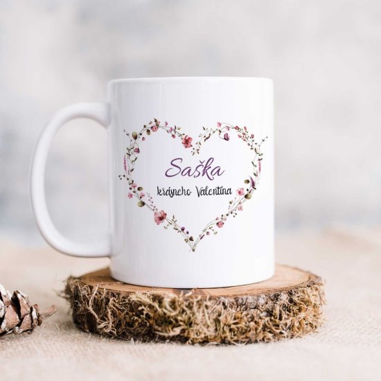 Valentínsky hrnček s menom – srdiečko z kvietkov
