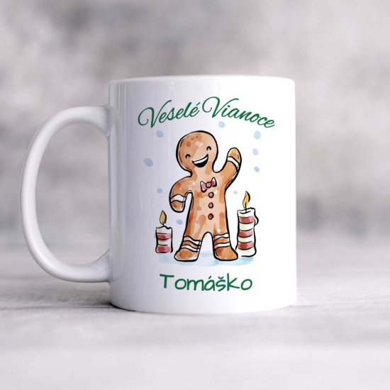 Detský vianočný hrnček – Veselé Vianoce, perníček s menom
