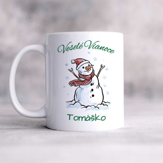 Detský vianočný hrnček – Veselé Vianoce, snehuliak s menom